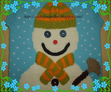Merhaba canlarım cananlarım,arkadaşlarım dostlarım hepinize merhaba.Yaklaşık on gündür bilgisayarım çalışmıyordu.Artık yaşlandı,ha bire parça kırıyor.İdare ediyoruz işte,devir idare devri değil mi?:))Görmeyeli iyisinizdir inşaallah?Ben iyiyim bu arada boş durmadım,yeni işler yaptım yarımları bitirdim.Farklı tarifler uyguladım uydurdum.İlk önce yaptığım en beğenilenini ilk olarak paylaşmak istedim.İşte kardan adam desenli süveter modeli;