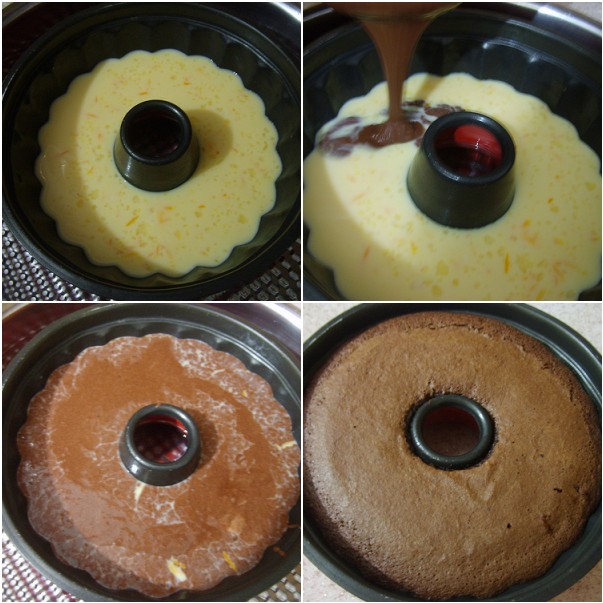 *Kekimizide klasik kek yapar gibi hazırlayıp,yavaşça sütlü karışımın üzerine dökün.Görüntü sizi korkutmasın pişme esnasında yeniden ayrışacaklar.