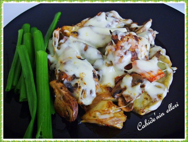 Üzerine kaşar rendesini serpip kaşar eriyene kadar fırında tutup çıkarın.