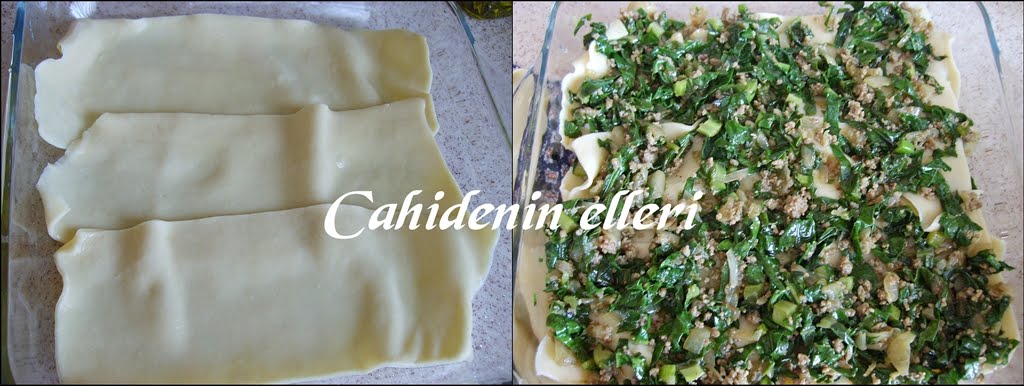 Hamuru 20 dakika kadar dinlendirin.hamur dinlenirken içi hazırlayın.Soğan ve kıymayı kavurun,içine doğranmış.Ispanakları ilave edin.Tuz ve baharatlarınıda atın.Ispanaklar yumuşayana kadar pişirin.
