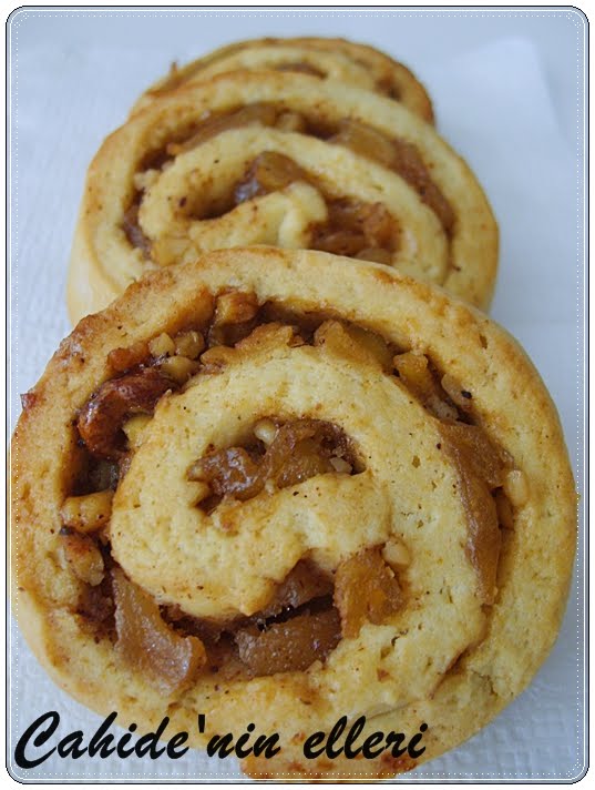Kurabiye fazla yapmam ama elmalı kurabiyeler favorimdir.Bu şekilde rulo yapınca daha kolay pişiyor,içleri hamur kalmıyor.İbni sina’nın “Midesinde elma varken ölene şaşarım” sözü de çok etkiler beni.Demek  ki bu kadar faydalı bir meyveymiş bu elma.Bu yüzden elmayı çok kullanmaya gayret ederim…