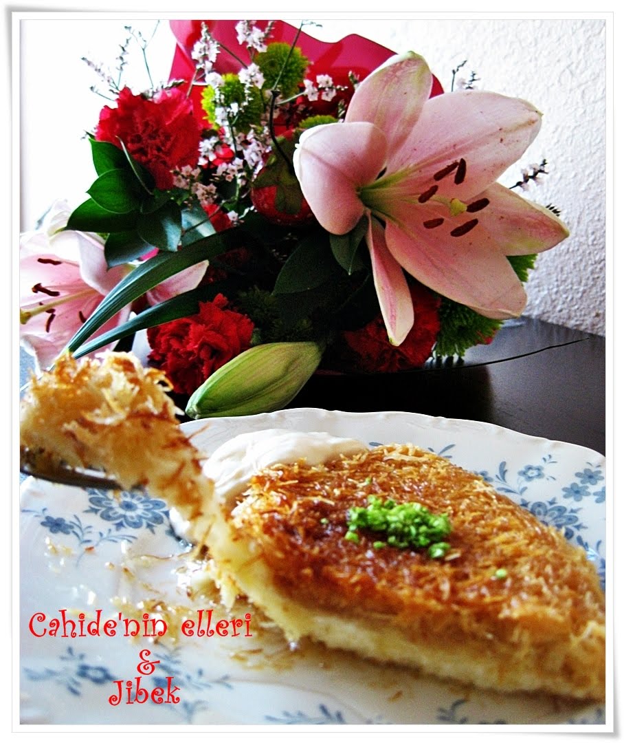 jibekcim künefe çok hoş görünüyor .bende geçen çok sevdiğimiz bir ablamızda tatmıştım harikaydı . eminim senin yaptığında öyle olmuştur .ellerine sağlık .