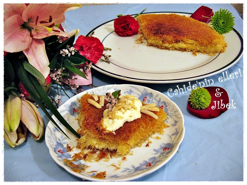 bayılırım künefeye dışarı yemeğe gittiğimizde istediğim tek tatlıdır künefe üzerinde kaymakta olacak mutlaka bol kalori 🙂 elinize sağlık jibek hanım.