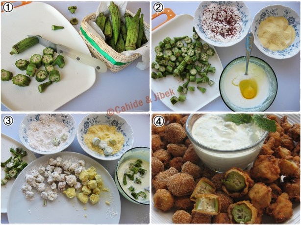 *Bamyaları önce ekşi kremaya ardından una bulayın. (beyaz un ile yapılanlar yumuşak, mısır unu ile yapılanlar çıtır oluyor)