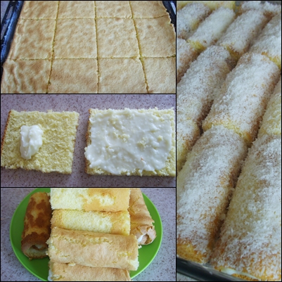 • Düz bir tabağa biraz süt koyup ruloları içine hafifçe batıralım ve hindistan cevizine bulayalım.