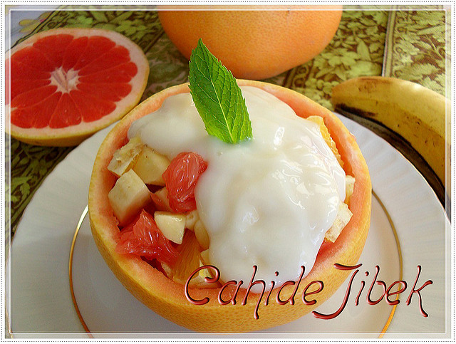 Meyve Salatasini arada bir yapiyorum ama graepfruit ile hic denememistim..bende yorumlarin aksine graepfruit u cok severim 🙂 bugun marketten yine aldim 🙂