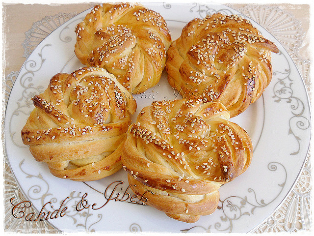 • Hamurun üzerine 1 çay kaşığı yoğurtla karıştırılmış yumurta sarısı sürüp, susam serpin. Tepsi mayası gelene kadar bekleyin. 200 derecelik fırında kızarana kadar pişirin.