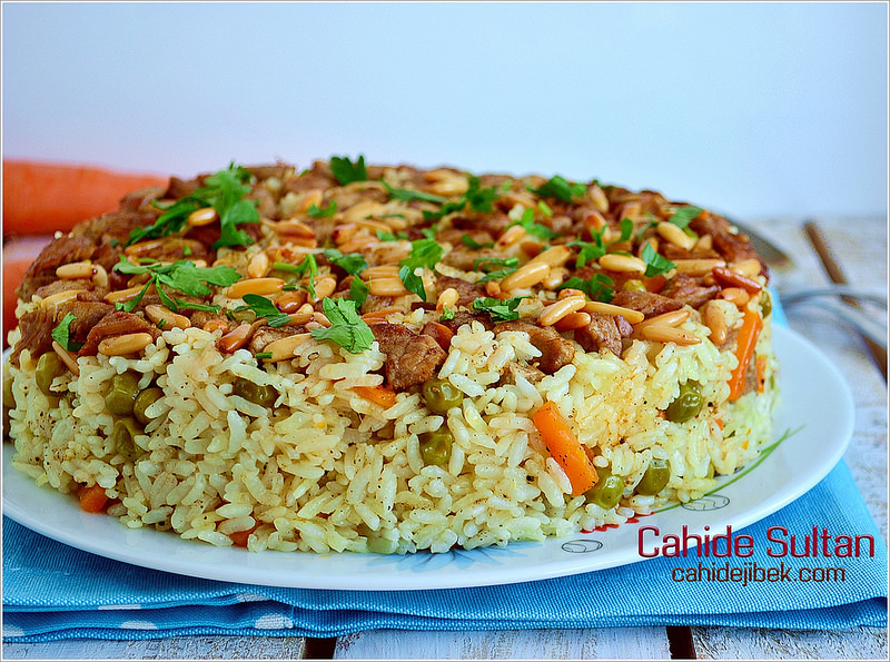Buhara pilavının orijinali budur diye bir iddiamın olmadığını baştan belirteyim. Buhara pilavının içinde bezelye olmaz. Özbek pilavına benzer ancak, Özbek’ler bunu kabul etmez 🙂 İçine nohut, badem, kuş üzümü gibi malzemeler de eklenebiliyor. Fakat bu haliyle de pilav çok nefis oluyor. Çam fıstığı yoksa eklemezsiniz. Hiç sorun olmaz. Kırmızı et yerine tavuk eti de kullanılabilir.