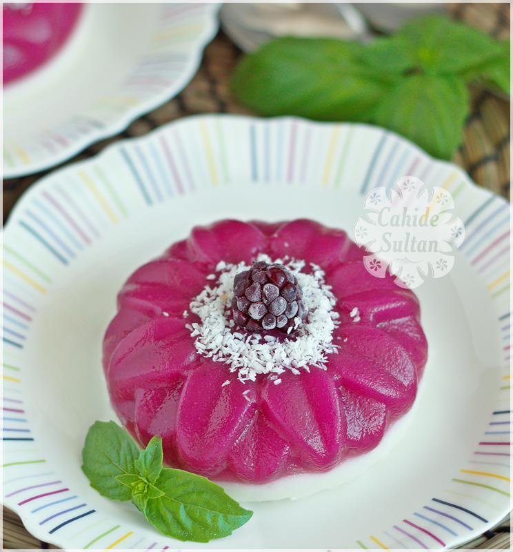 Hafif yaz tatlıları arayanlar için, iki renkli karadutlu muhallebi tarifi. İçine hiç yağ eklemedim.