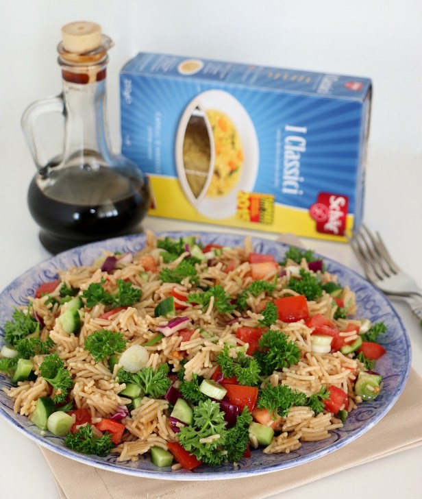 Glutensiz tariflerle devam ediyoruz. Bu kez glutensiz şehriyeyle nefis bir şehriye salatası hazırladım. Gluten hassasiyeti olmayanlar, tarifi normal şehriyeyle de yapabilirler.