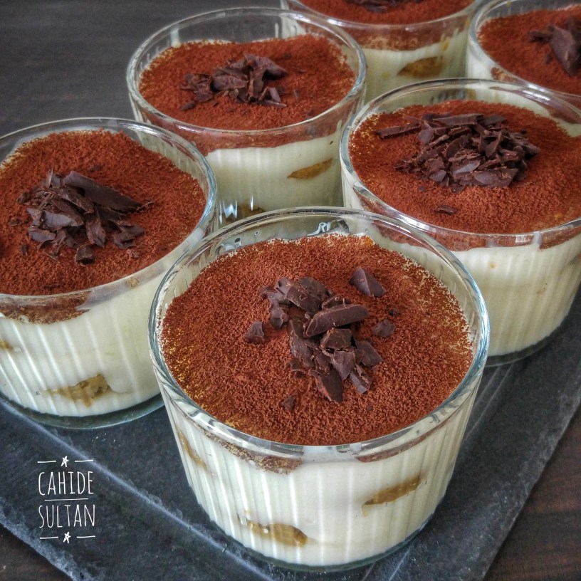 Tek kişilik kaselere bir küçük kepçe krema dökün.  Kedi dillerini ikiye bölün hazırladığınız kahveli sosa batırıp kremanın üzerine yerleştirin.