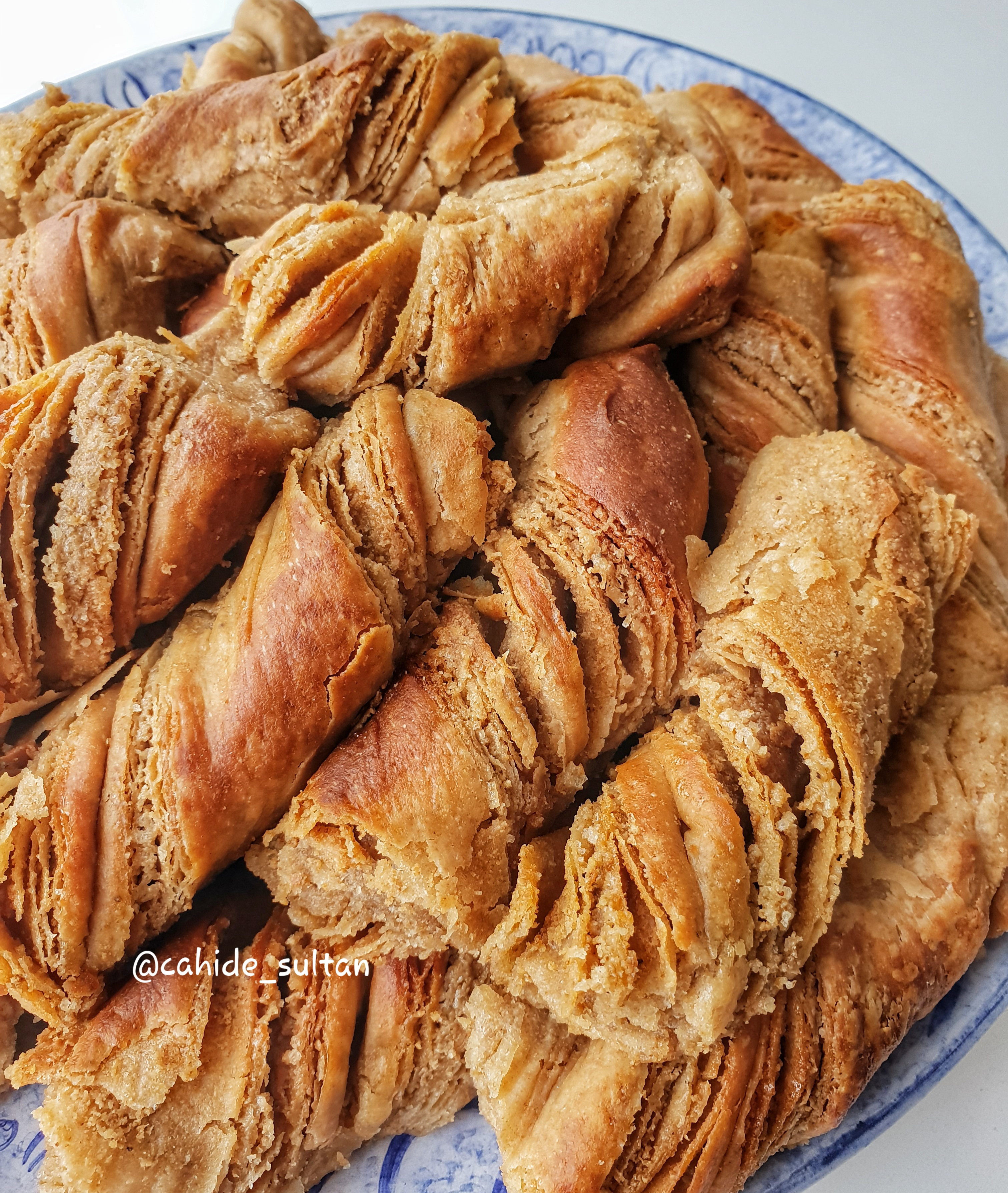 Ben klasik bükmeye göre, kat sayısını artırdım ve biraz daha ince açtım. Bir de klasik bükmede hamur epey yumuşak oluyor. Ben daha sert bir hamur hazırladım. Böylece içi yumuşak dışı gevrek oldu.
