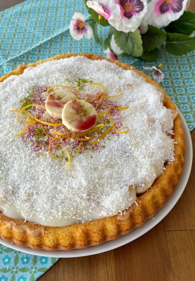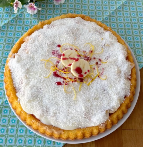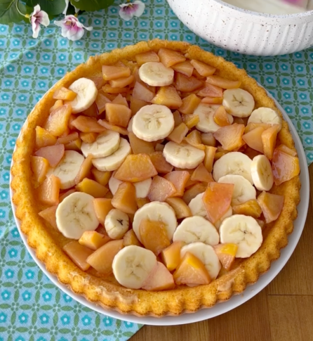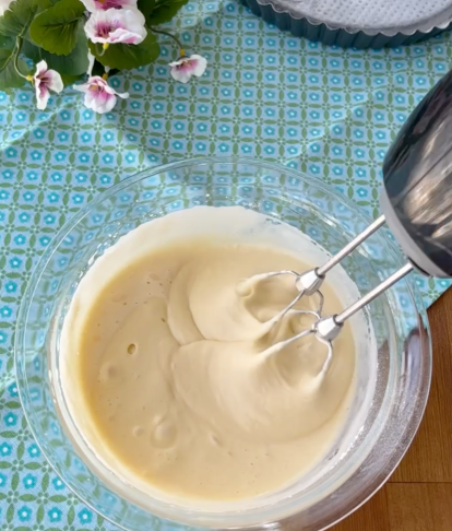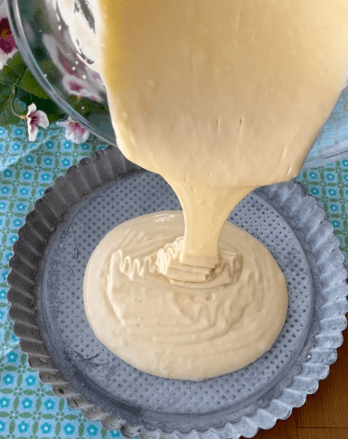 Kek için yumurta ve şekeri güzelce çırpın. Yağ, süt, kabartma tozu ve vanilya ekleyip karıştırın. En son unu ekleyip karıştırın. tereyağı ile yağlanıp unlanmış 28 cm çapındaki tart kalıbına hamuru dökün. Önceden ısıtılmış 180 derecelik fırında üzeri kızarana kadar pişirin. Tart kalıbında kek çabuk pişer ama yine de kürdan testi yapıp sonra fırından alın.