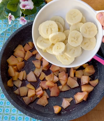 Ayvayı pişirdikten sonra biraz azaldığı için bir tane de muz ilave ederek harcı çoğaltmış oldum.