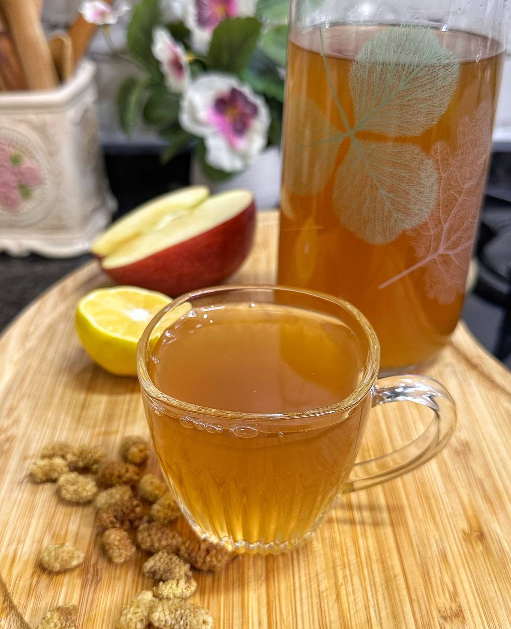 Ben köyden getirdiğim kuru dutu kullandım. Çok tatlı bir dut. Eğer kullandığınız dut tatsızsa miktarı biraz artırabilirsiniz. Dutun tadı tamamen suya geçince yani dut tatsızlaşınca çayı süzebilirsiniz.